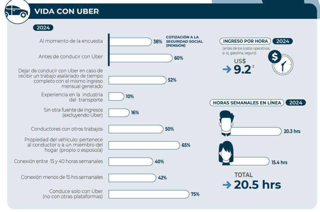 Estudio del BID revela datos sobre quienes conducen en esta plataforma como cuántos cotizan para una pensión o cuánto ganan por hora, en promedio.