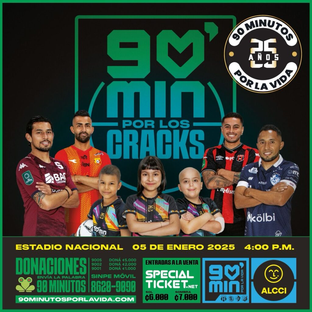 En su edición número 25, los 90 Minutos por la Vida se consolidan como un símbolo de solidaridad y unidad. Según datos de la Asociación Lucha Contra el Cáncer Infantil (ALCCI), en Costa Rica se diagnostican cerca de 160 casos de cáncer infantil al año, de los cuales aproximadamente un 75% de los niños logra superar la enfermedad.