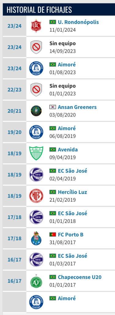 Desde 2016 ha militado en los siguientes clubes según el sitio transfermarket: