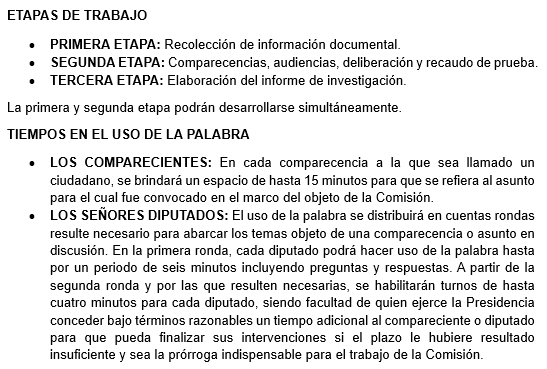 Posteriormente, se definió la metodología de trabajo de esta Comisión Especial: