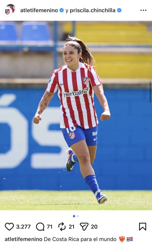 “¡De Costa Rica para el mundo!”, resaltó en todas sus redes sociales el equipo colchonero a la delantera tica.