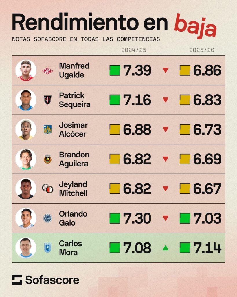 “No es la temporada que esperábamos para los legionarios en Europa”, publicó la plataforma de estadísticas Sofascore con respecto a los futbolistas costarricenses que militan en el Viejo Continente.