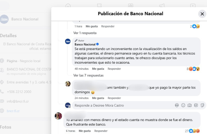 Este domingo 22 de setiembre, un numeroso grupo de clientes del Banco Nacional acudió a las redes sociales de la entidad financiera para informar que los saldos en sus cuentas eran inferiores a los que deberían tener.