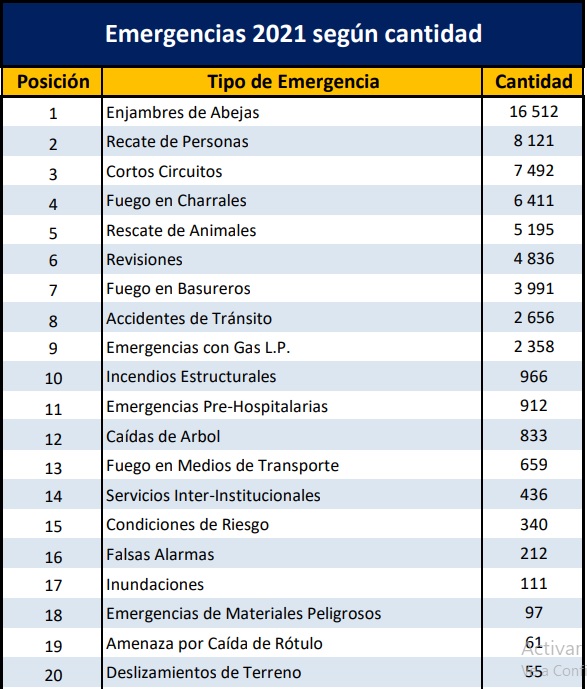 El informe estadístico del Cuerpo de Bomberos desglosa por categorías las emergencias atendidas anualmente. En el 2021, los enjambres de abejas ocuparon el primero lugar con 16.512 casos, es decir, 45 diarios en promedio.
