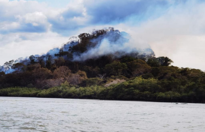 La emergencia tiene lugar en la Isla de Berrugate, en San Pablo de Nandayure, Guanacaste. Para atenderla, se ha requerido el traslado de la Unidad Operativa Forestal y de la Unidad Naval de Bomberos.