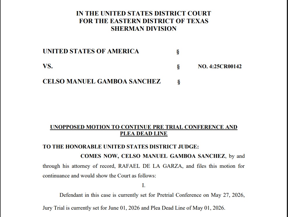 La defensa del Gamboa aseguró que hizo la consulta con el Fiscal Auxiliar de los Estados Unidos, Wes Wynne, el 27 de abril de 2026, «quien no se opone a la moción» planteada. Agregó que la gestión «no tiene como finalidad generar retrasos».