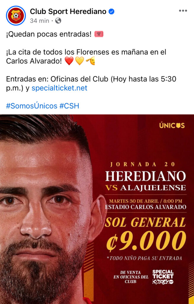 Herediano ya reconfirmó el partido en sus redes sociales: