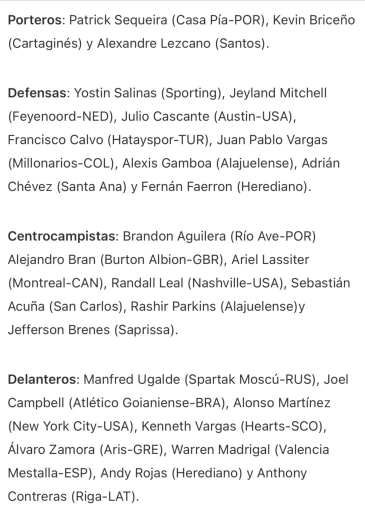 La Federación Costarricense de Futbol dio a conocer esta mañana la convocatoria de la Selección Nacional para los partidos contra Panamá del 14 y el 18 de noviembre por los cuartos de final de la Nations League.
