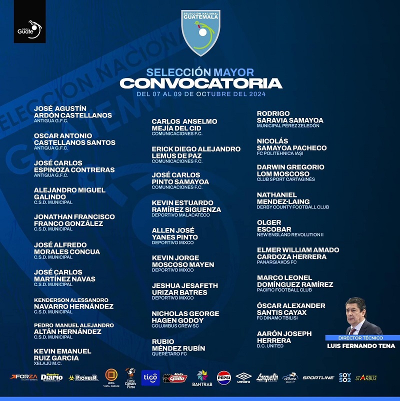 El mexicano Luis Fernando Tena dio a conoce la convocatoria de 28 futbolistas de Guatemala disponibles para los partidos contra Guyana y Costa Rica en el cierre de la fase de grupos de la Liga de Naciones de la Concacaf.