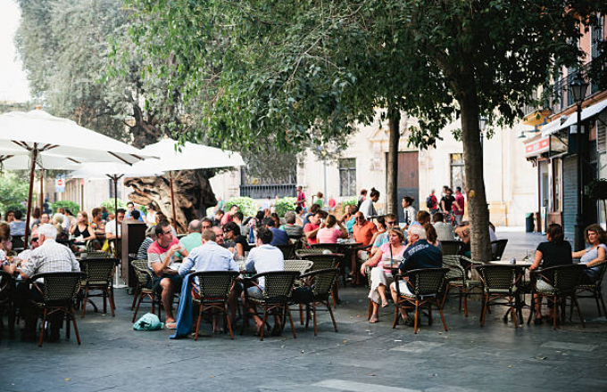 Esta actividad se podría desarrollar en zonas como aceras, parques, plazas, vía pública, calles u otros lugares públicos, adyacentes a los respectivos establecimientos comerciales.