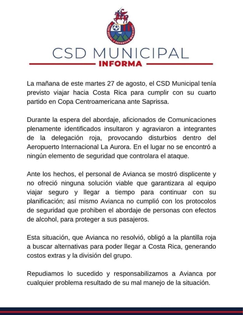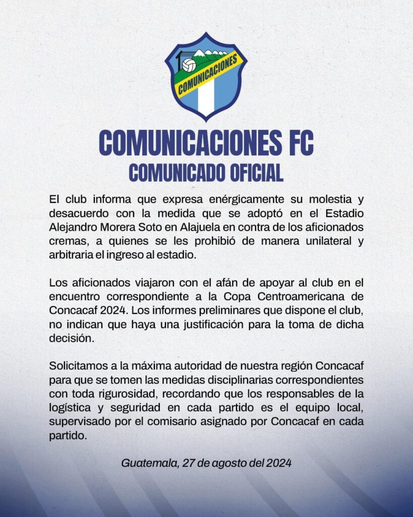 Horas antes fue el también guatemalteco Municipal el que denunció a estos aficionados del Comunicaciones, su archirrival en el país chapín.
