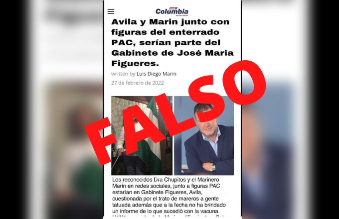 En la supuesta nota, que utiliza maliciosamente el logo de Columbia, así como el nombre de un periodista del medio, se consigna que María Luisa Ávila, Rodrigo Marín y otras figuras del Partido Acción Ciudadana (PAC), formarían parte de un eventual gobierno del Partido Liberación Nacional (PLN).