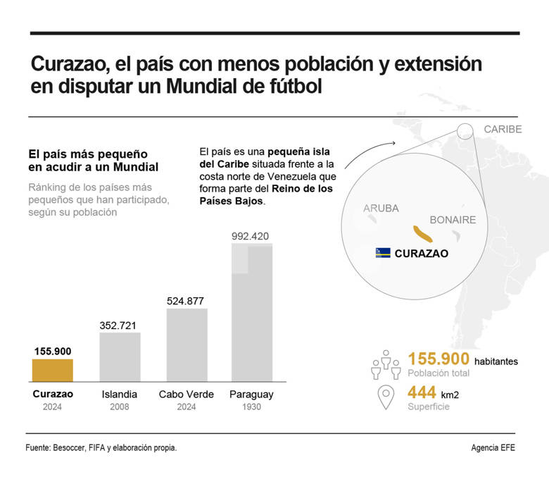 Curazao cuenta con poco más de 150.000 habitantes, además de ser el país más pequeño en cuanto a extensión que logra disputar un campeonato del mundo.