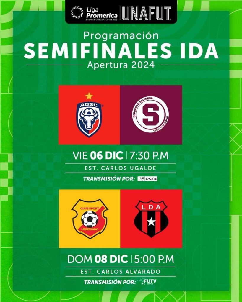 Después de analizar la solicitud de Fuerza Pública, así como de los clubes sede de las semifinales de ida, el Comité de Competición de UNAFUT comunica que los juegos quedaron pactados de la siguiente manera: