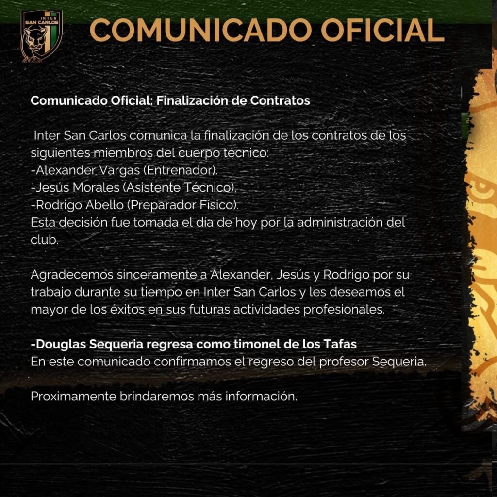 Inter San Carlos lo anunció como su nuevo DT, tras la salida del “Pipas” Alexander Vargas.