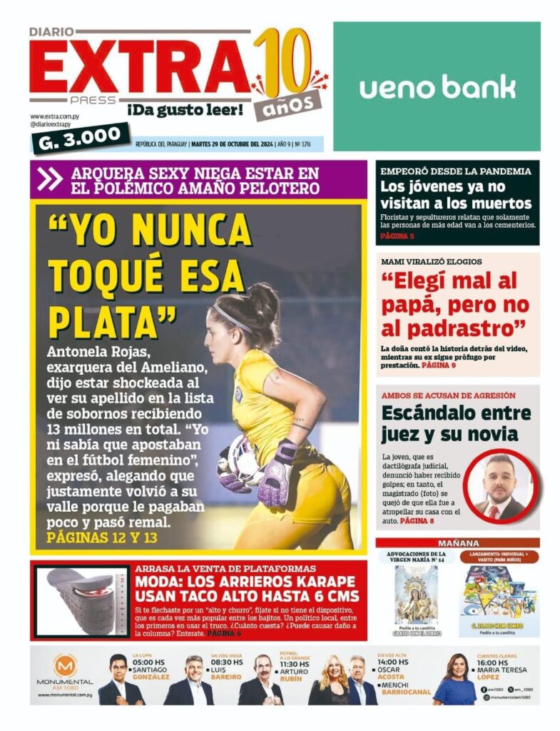 Supuestamente, Rojas habría recibido más de 7 millones de guaranís como “premio”, otros 4 millones por el trabajo y también un salario de 2 millones. En total, le señalan haber recibido 13 millones.