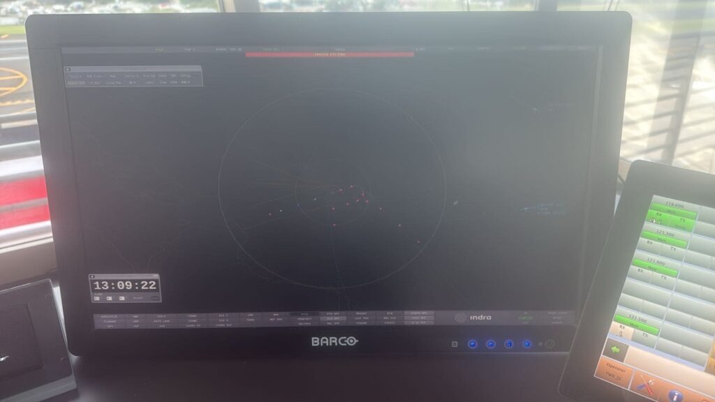 Noticias Columbia tuvo acceso a imágenes que muestran la imposibilidad de atender los vuelos por el fallo eléctrico. La fotografía y el video corresponden al área donde laboran los controladores aéreos.