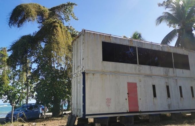 En el centro de Puerto Viejo, frente a la playa hay dos contenedores que serían remodelados para crear una delegación policial temporal.