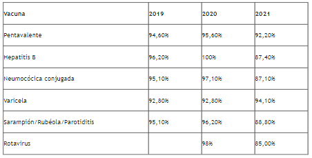 Sin embargo datos de la Caja muestran que en el 2021 hubo un descenso en relación con los indicadores de los años 2019 y 2020. La única excepción registrada durante el año pasado se presentó con la vacuna contra la varicela.