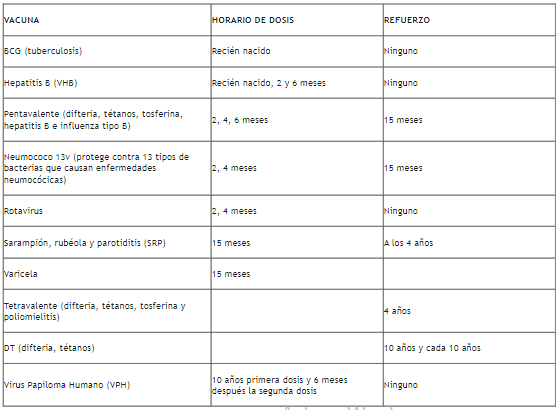Estos son todas las vacunas y edades que son parte del esquema de vacunación en menores: