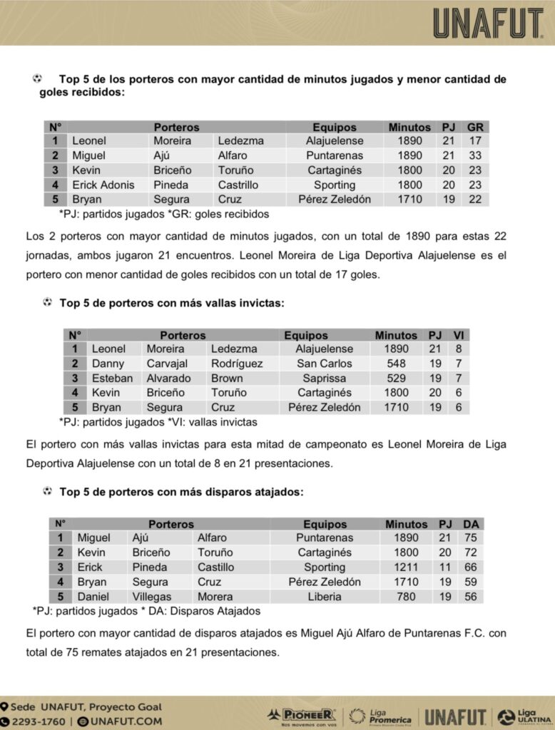 Así quedaron los escalafones de guardametas del campeonato nacional luego de la fecha 22.