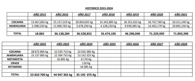 Afirmó que es información fidedigna que demuestra mayor incautación en períodos anteriores a esta administración.