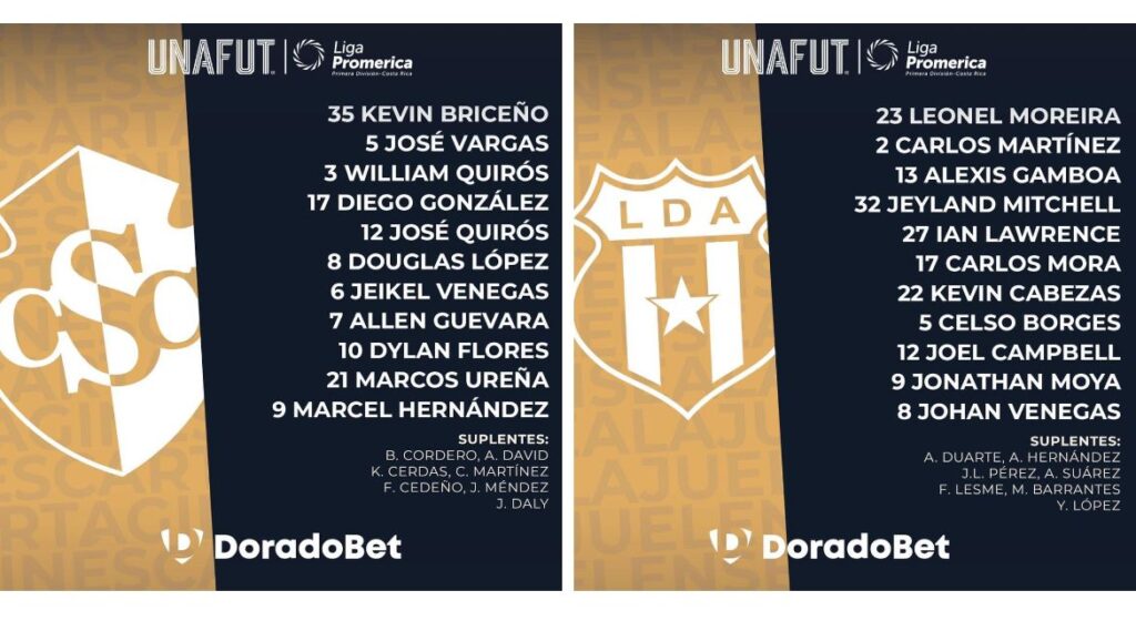 El encuentro fue dominado en la primera mitad por los manudos al tener mayor posesión del balón en la cancha. La primera opción clara que tuverion los visitantes fue por parte de Jonathan Moya, producto de una salida rápida de Alajuelense en el costado izquierdo con un cabezazo al segundo palo, donde pudo haber tirado el balón al palo largo, y esto hizo que el arquero brumoso, Kevin Briceño le achicara la acción.