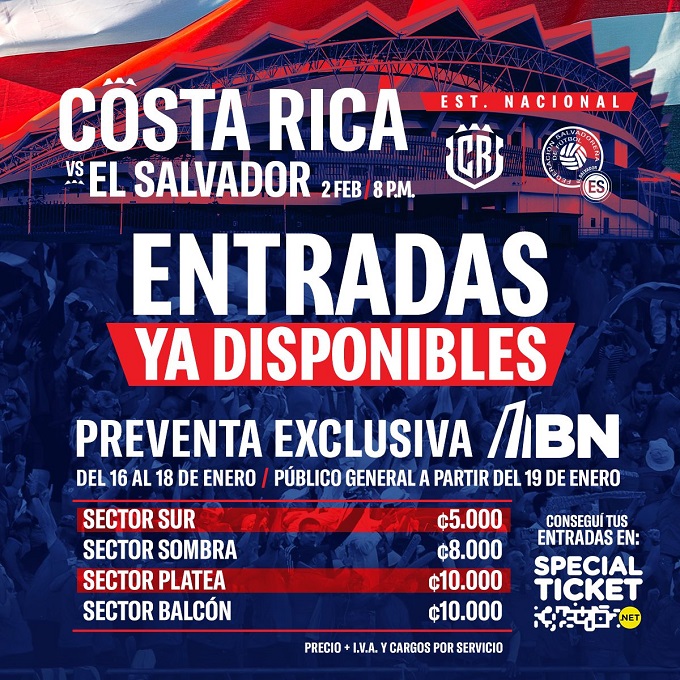 Desde el pasado martes 16 de enero comenzó la preventa de entradas con un valor de 5 mil colones en sector sur, 8 mil colones sector sombra y 10 mil colones sector platea y balcón (más IVA y cargos por servicio).