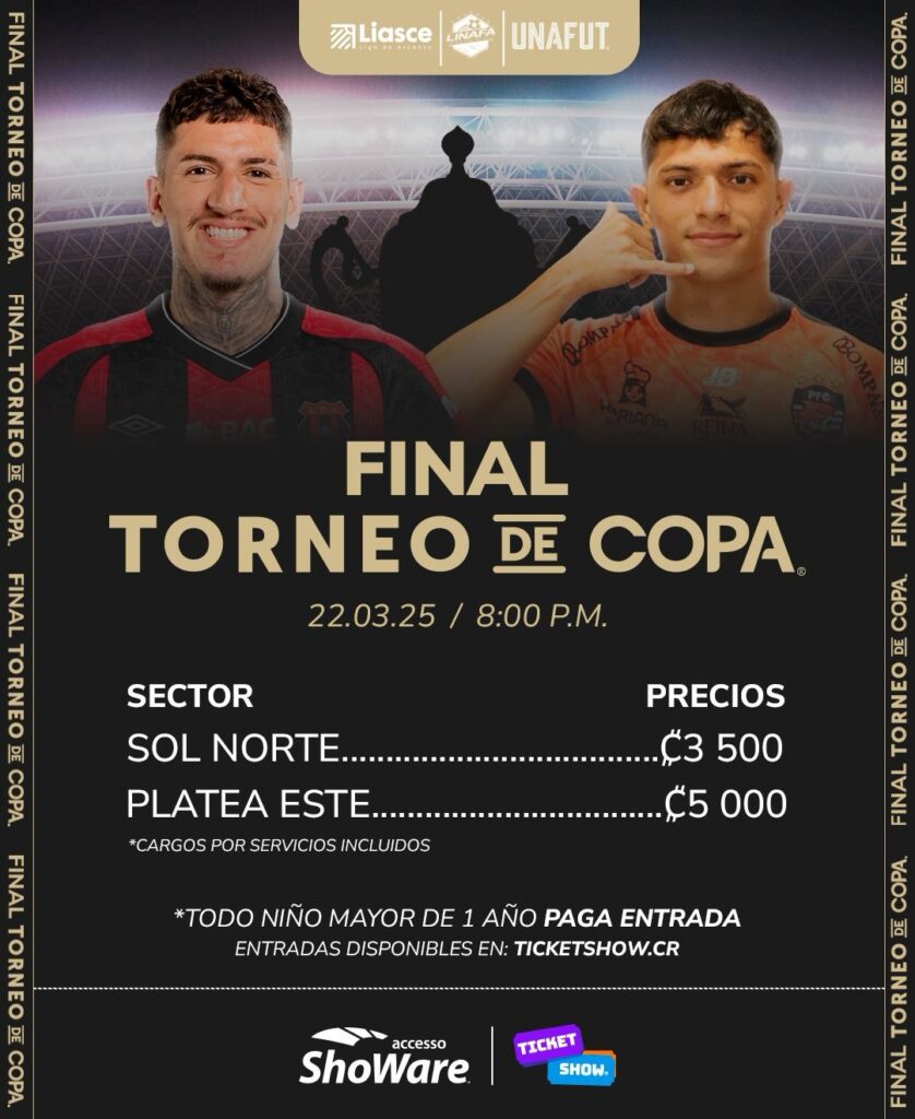 “Desde UNAFUT, estamos muy emocionados por esta final del Torneo de Copa. Son dos grandes equipos que hicieron los méritos para llegar a esta instancia. Desde ya nos encontramos preparando todos los detalles, para que las personas puedan vivir la fiesta del fútbol y disfrutar de este evento. Los invitamos a comprar sus entradas a través de www.showare.com y traer sus camisetas, cábalas, banderas, así como cánticos” indicó Andrey Rosales, director de Competición de UNAFUT.