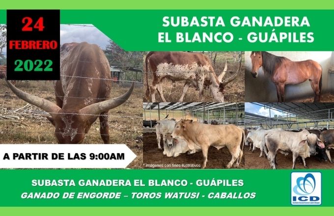 Una de las subastas será en la Asociación Cámara de Ganaderos Unidos del Sur a las 8:00 a.m. y la otra en la Subasta Ganadera El Blanco en Guápiles. Hay ganado de engorde, toros y caballos.