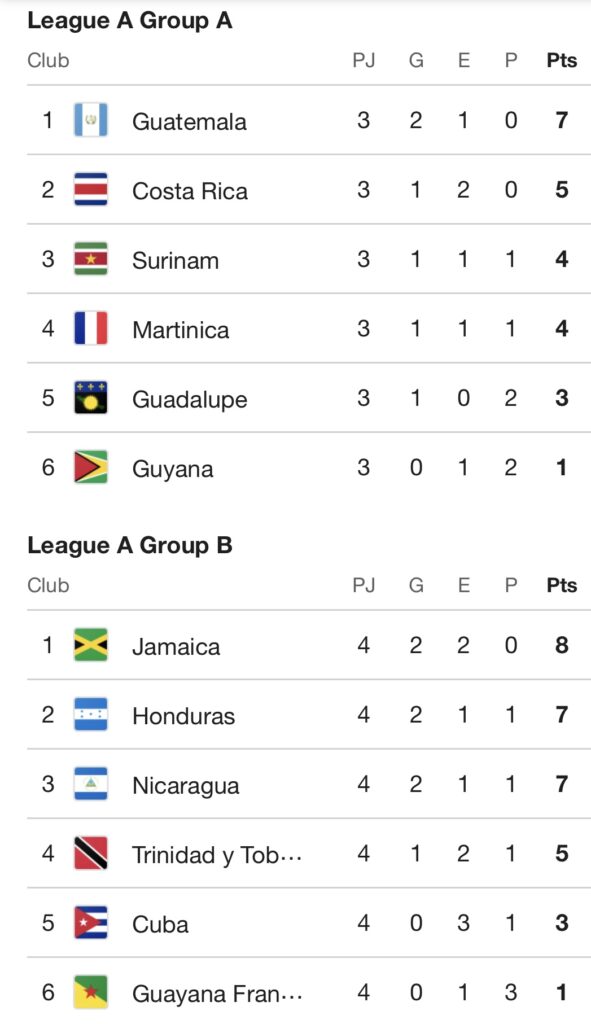 Los otros ocurrieron en Liga de Naciones, 3-1 sobre Martinica (este duelo válido solo para Concacaf) y 1-3 en casa de Guyana.