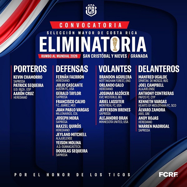 Después de estas dos jornadas, Costa Rica volverá a competir en la eliminatoria hasta junio de 2025 cuando visite Bahamas y reciba a Trinidad y Tobago.