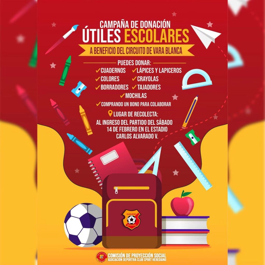 “Recordamos a toda nuestra afición y socios que seguimos con la campaña de recolección de útiles escolares”, publicó a la Asociación Club Sport Herediano en sus redes sociales.