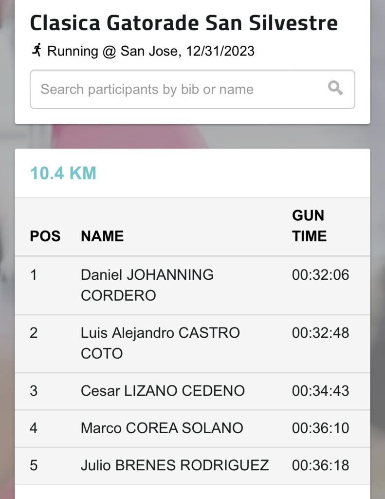 “Desde 2013 la corro y gracias a Dios esta es la sexta vez consecutiva que puedo ganarla”, comentó al término de la clásica del 31 de diciembre en San José que organizó Global Sport Group.