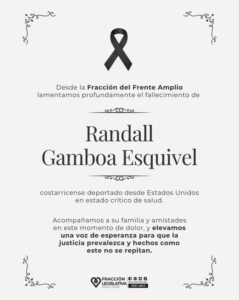 El Ministerio de Relaciones Exteriores y Culto hizo una publicación en la que «lamenta profundamente el fallecimiento del ciudadano costarricense Randall Gamboa Esquivel y expresa sus más sinceras condolencias a su familia y personas allegadas en este difícil momento».