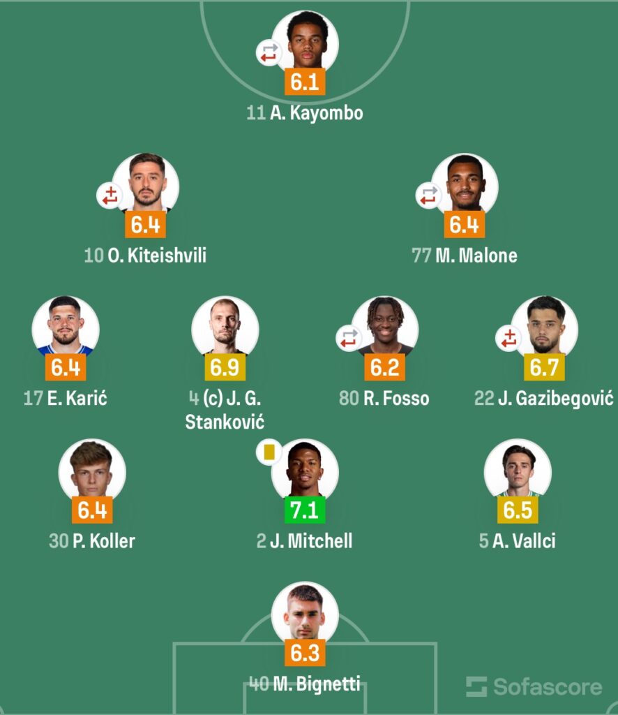 Titular, Mitchell fue amonestado al 53’. Fue el mejor calificado del Sturm Graz por la plataforma Sofascore (7,1).