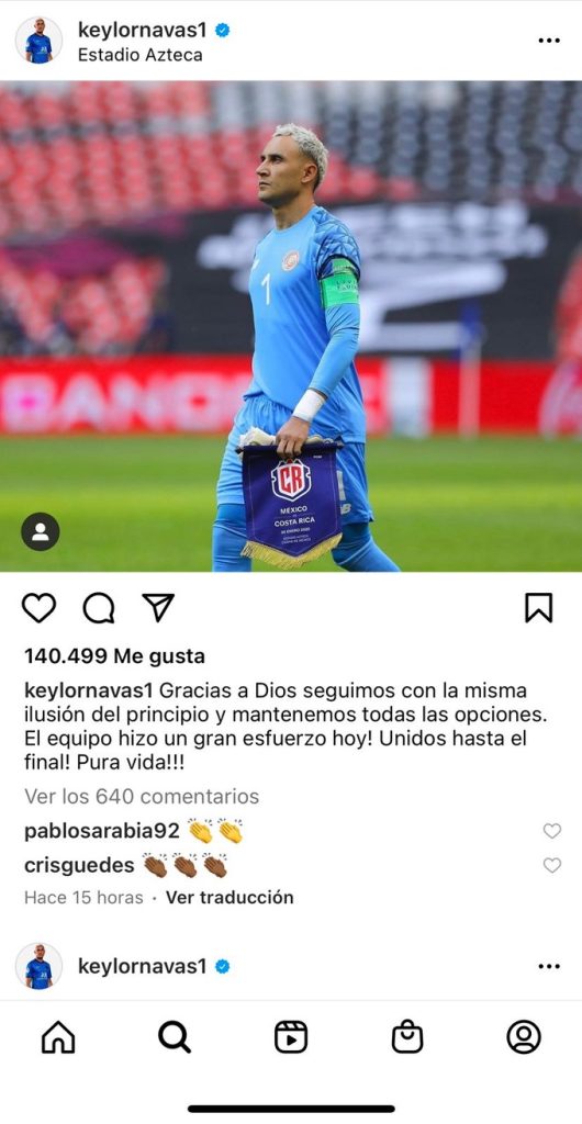 «Unidos hasta el final. ¡Pura vida!», cerró el guardavallas de Costa Rica.