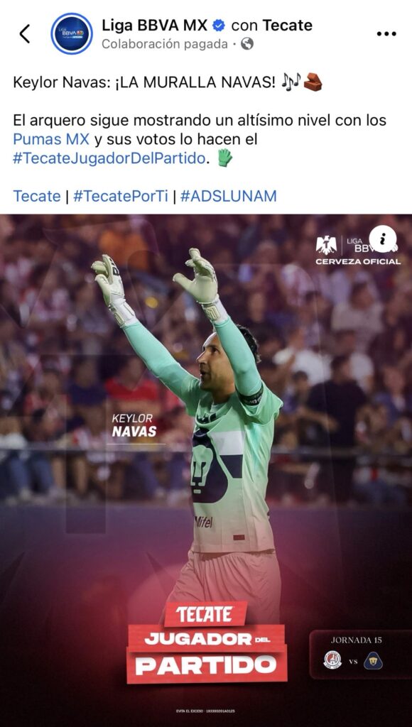 Navas fue catalogado por la Liga BBVA MX como “Jugador del Partido”: