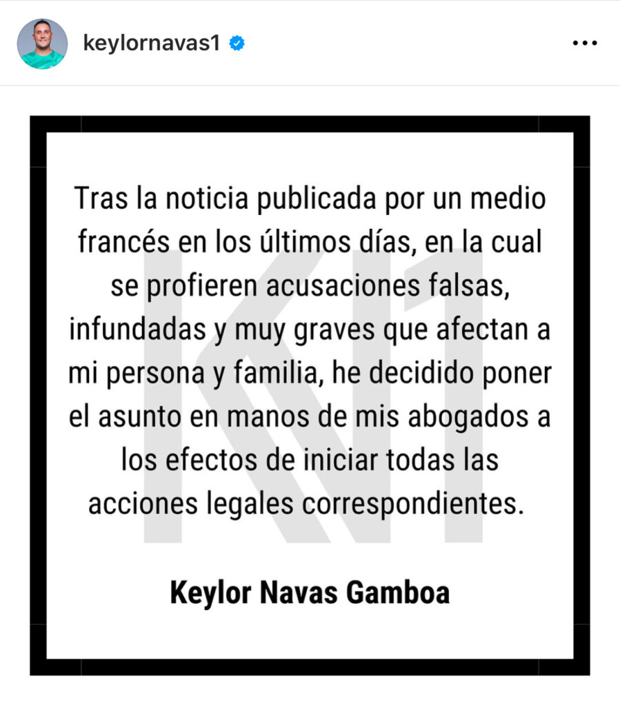 Navas ya se pronunció mediante la siguiente publicación: