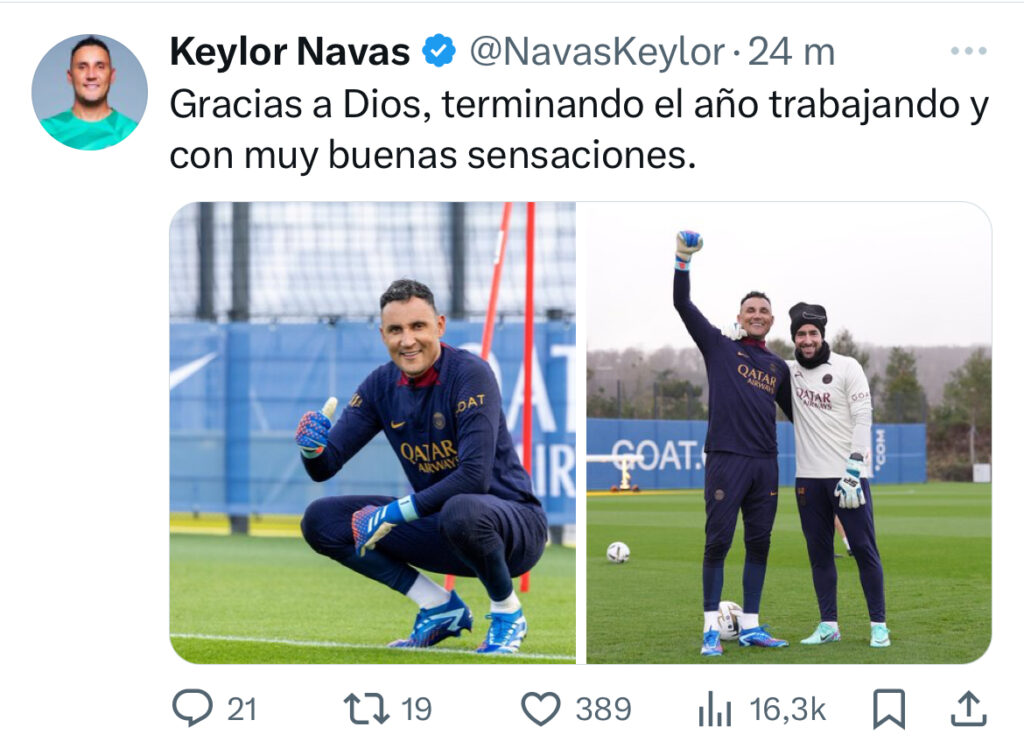 El mensaje publicado en sus redes sociales deja ver un discurso optimista de Keylor Navas de cara al año entrante.