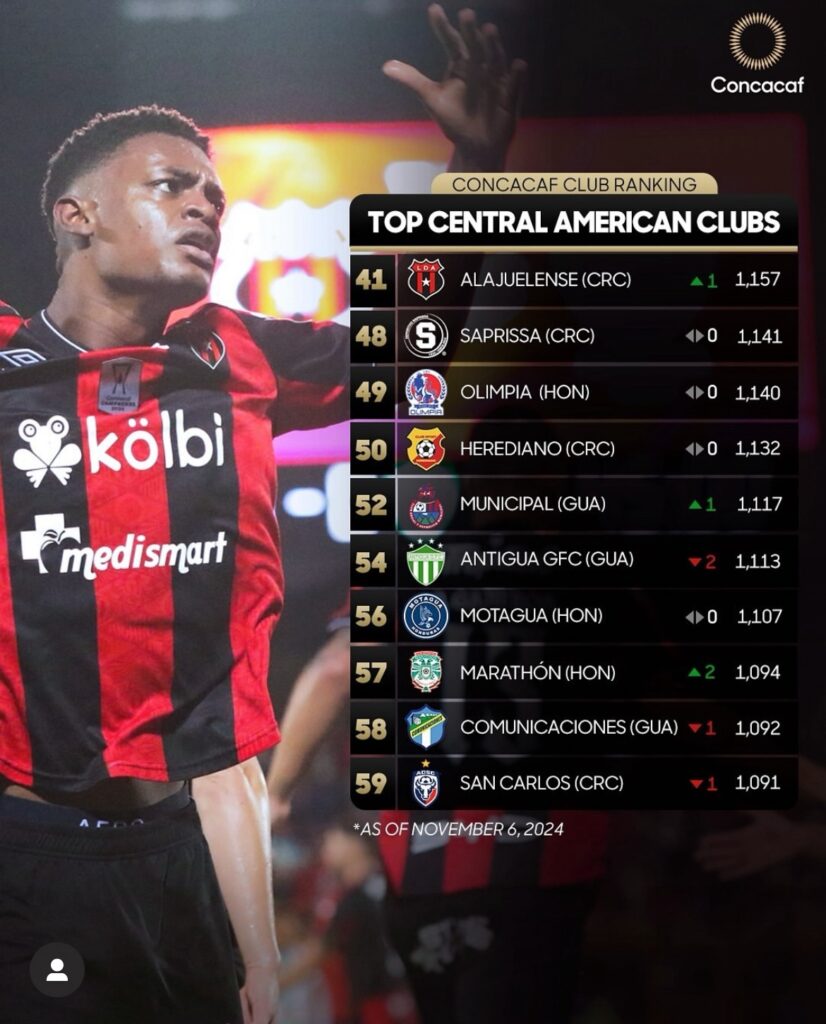 Alajuelense mantiene el liderazgo centroamericano en el Escalafón Concacaf antes de la Final de la “Central American Cup”.