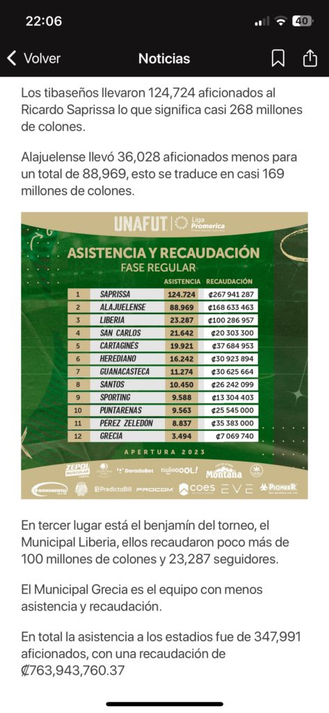 Saprissa lideró la asistencia y recaudación de los 12 equipos de primera división, seguido de Alajuelense, pero la gran sorpresa de las 22 fechas todos contra todos fue el benjamín, Municipal Liberia.