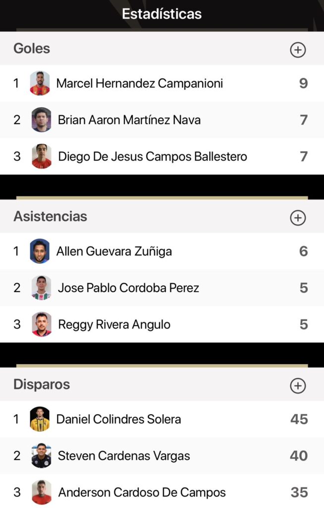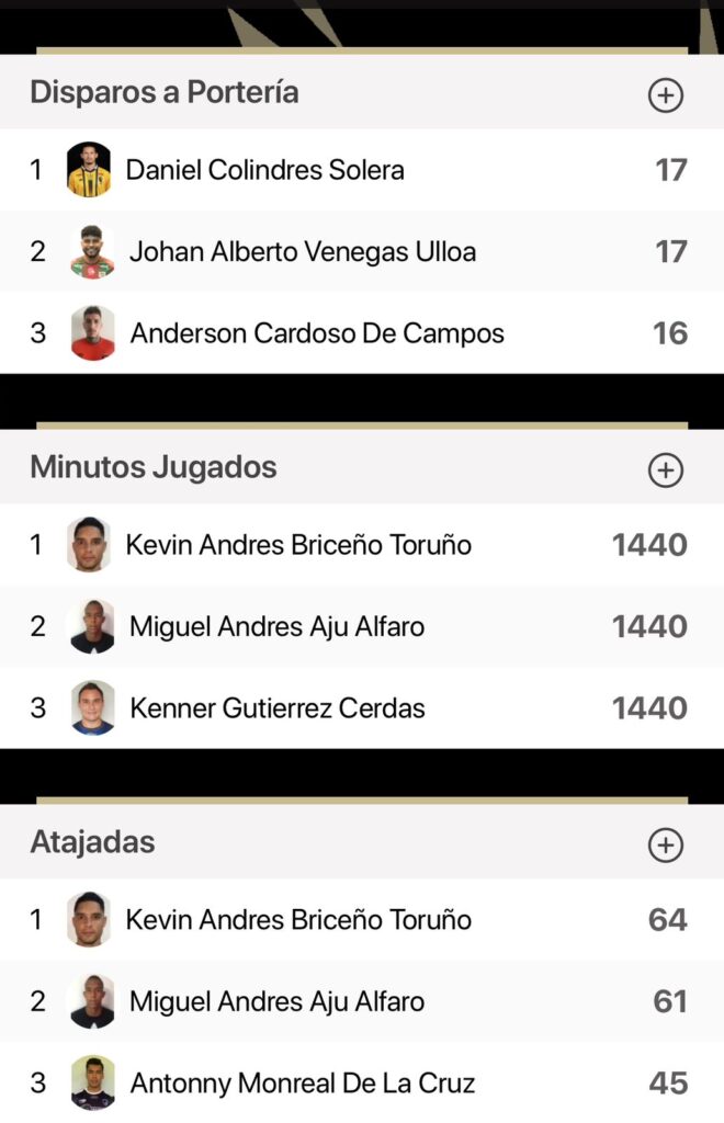 Tras 16 jornadas menos dos partidos (Alajuelense-Herediano y Liberia-Saprissa), ellos lideran los apartados estadísticos del Torneo Apertura 2024 de la Liga Promérica costarricense: