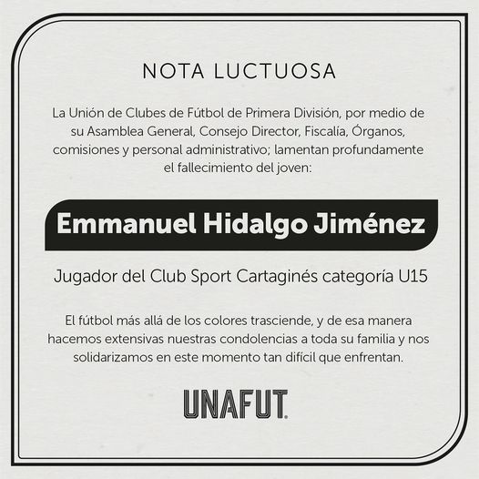 Fue en la cancha de Dulce Nombre de Cartago a eso de las 6pm que el jugador oriundo de la zona de los Santos cayó, los presentes llamaron a la Cruz Roja y por varios minutos el personal paramédico intentó reanimar al menor de 15 años de edad, reportó prensa local. Se logró que recuperar el pulso y se le trasladó al hospital Max Peralta, donde falleció a minutos de ingresar.