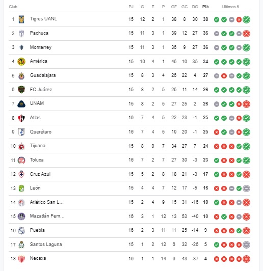 Las rojinegras están en el octavo puesto con 25 unidades, uno menos que Pumas, cuando sólo falta una fecha de la fase regular del torneo Apertura 2024. No tapó la portera tica Daniela Solera, fuera de convocatoria.