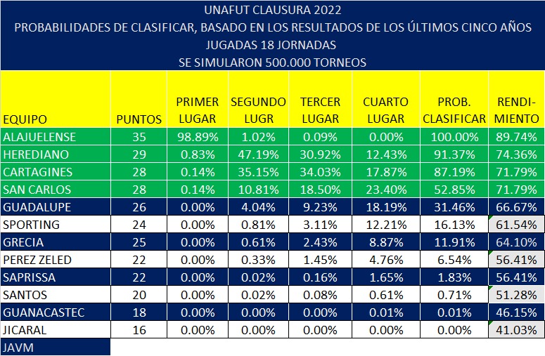 Según el ingeniero Jorge Vargas, «El Matemático del Fútbol», a pesar de los dos triunfos consecutivos que la logrado Saprissa en el torneo, su porcentaje de posibilidad para lograr entrar en semifinales no mejoró sustancialmente.