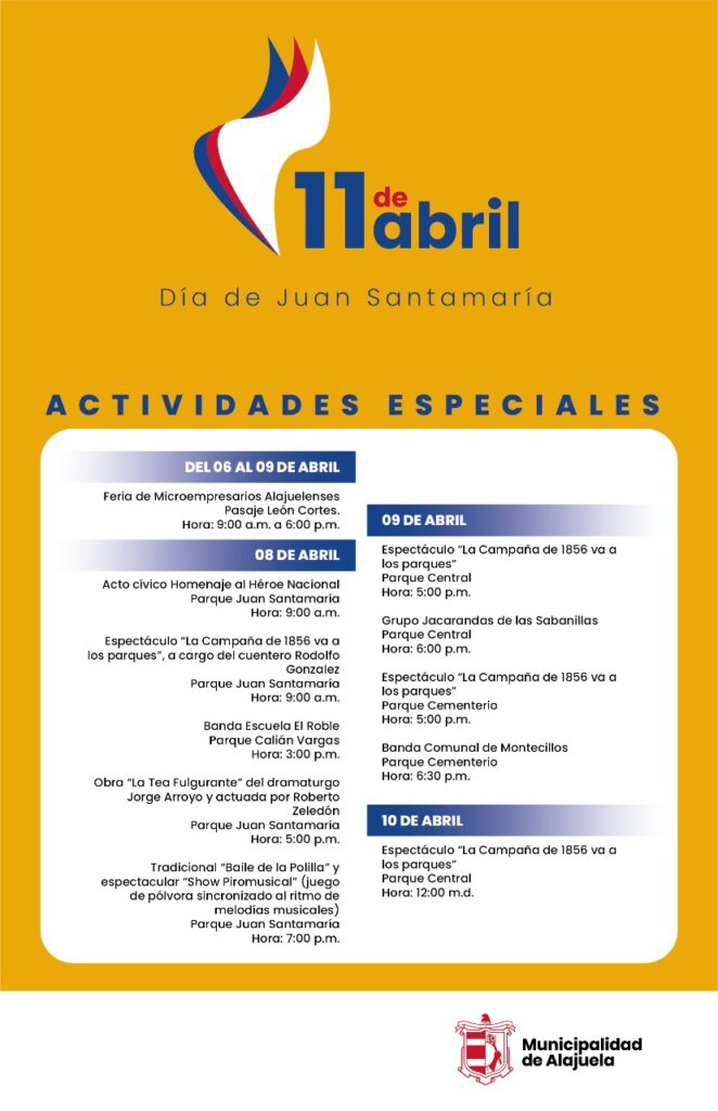 La lista de actividades para el fin de semana puede ser consultada en la página en Facebook de la Municipalidad de Alajuela.
