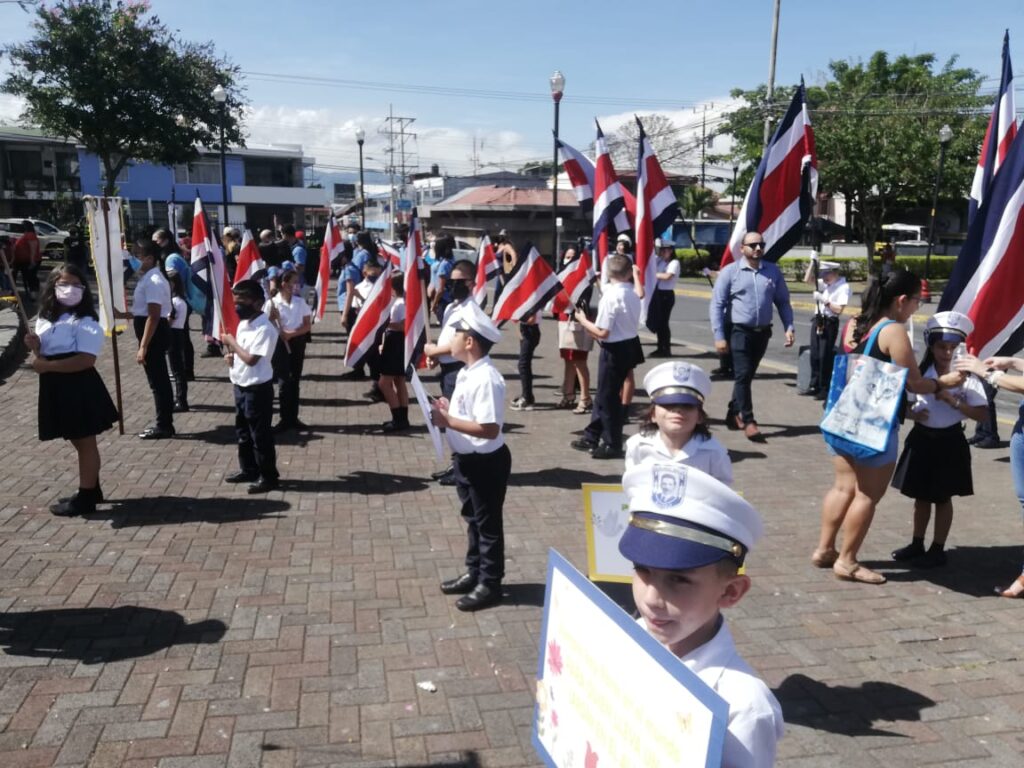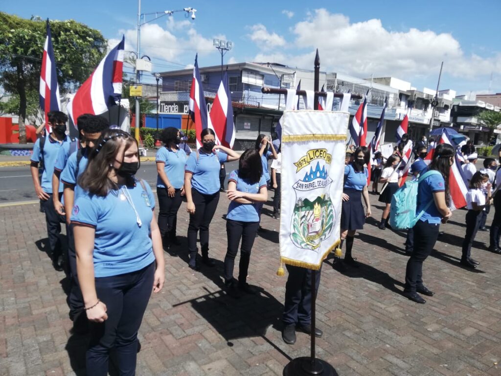 A pesar de que existe posibilidad para actividades con mayor aforo, el acto cívico del Ministerio de Educación tuvo poca representación de estudiantes a los pies del monumento a Juan Santamaría. Contrario a las celebraciones pre pandemia, no hubo desfiles por las calles de Alajuela.