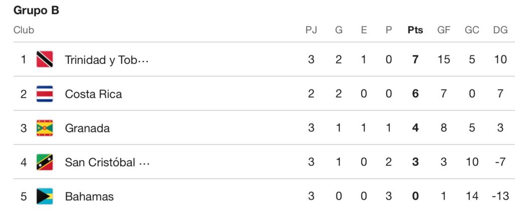 Bahamas viene de perder el pasado martes por 6-0 ante Granada y cerrará ante Costa Rica su participación en la eliminatoria.