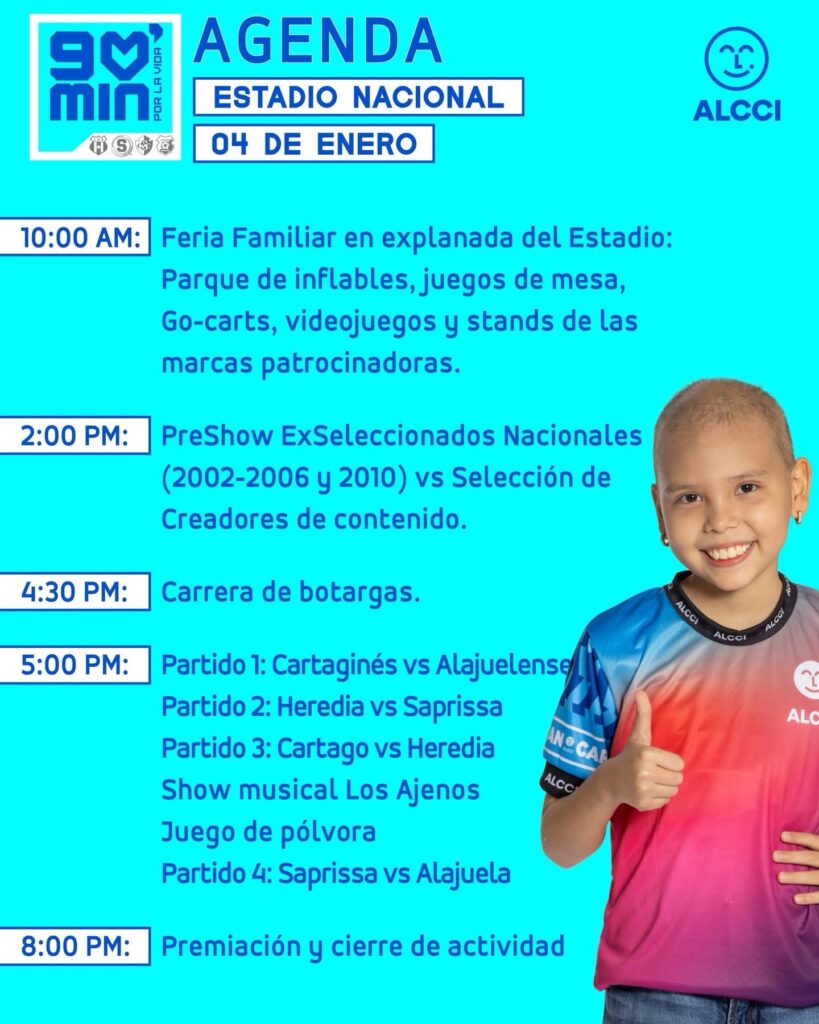 Este domingo 4 de enero del 2026 a las 5:00pm, se disputará una edición más de los “Noventa Minutos por la Vida”, evento de fútbol benéfico a favor de los niños con cáncer. Las entradas están en www.specialticket.net.